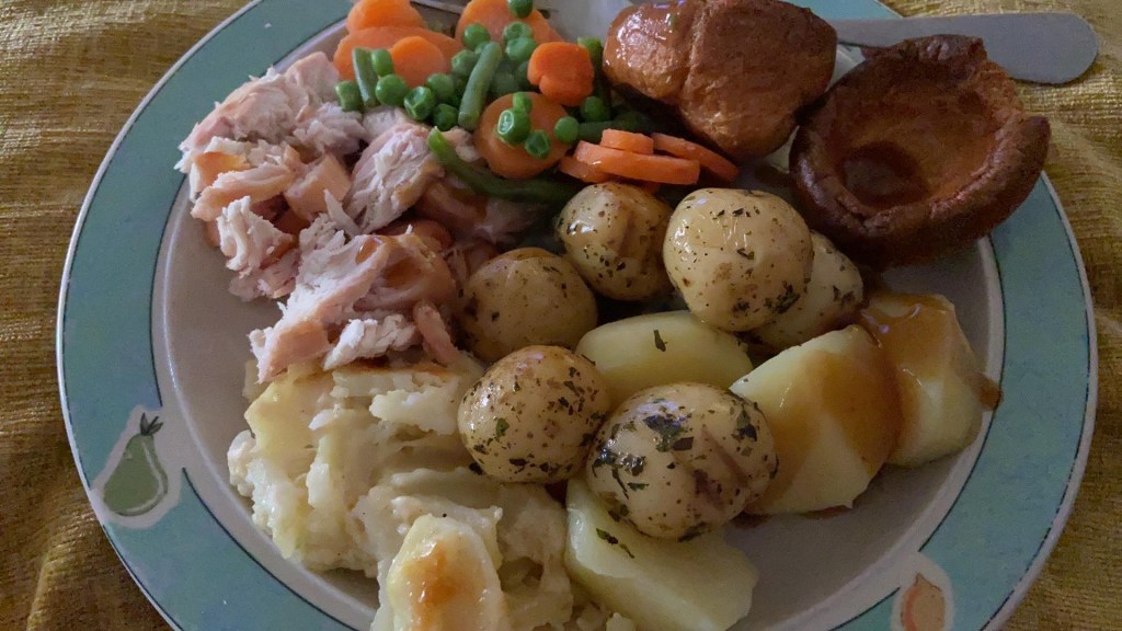 So today, I cleared around some more stuff. I cooked a Sunday lunch out of what we had around the house (food obvs) – chicken breasts, a handful of potatoes to boil, veg, Yorkshire puds. The boys enjoyed it, and it turned it quite well, apart from me overcooking the yorkies.