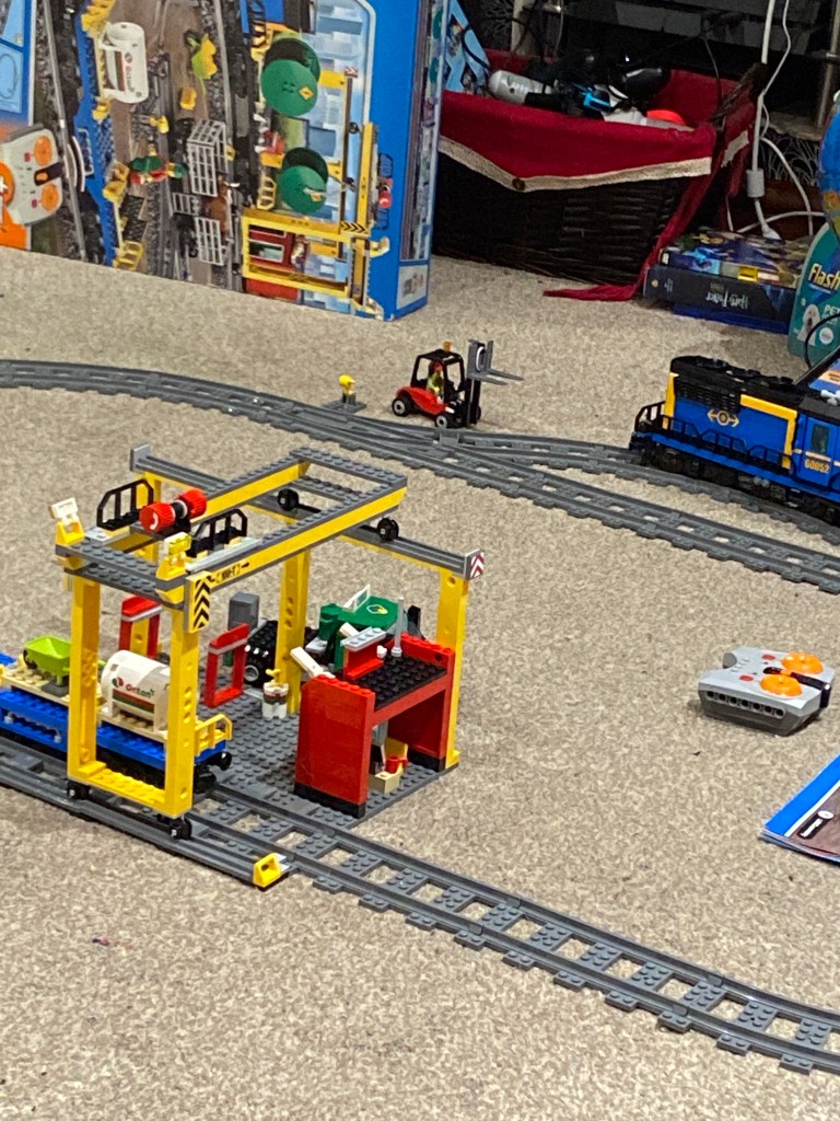 Bad parent of the day award goes to me! Ethan has been grafting away since yesterday to crest this masterpiece above – clicking each piece together and following the instructions meticulously. And then the time came when he could try it out! Only problem was that it needed 9 AAA batteries! Who on earth has that many of those batteries lying around? I searched the battery box, found a mix of AAA batteries that probably were half used ages ago and with hardly any juice left in them….Ethan watched eagerly as I placed the batteries where they were needed, but alas, the train and controller wouldn’t work! Damn it! Any other time I would throw my coat on over my PJs (not really, I wouldn’t be seen out and about in my frayed Friends PJ bottoms…..although I did wear them when I was out on my drive earlier today) and drive or stroll to the shop to purchase more, but it’s not that easy now with everything that is going on…..for one, I wasn’t sure they would even have enough of what was needed, and for two, I would be buying from the local shop, meaning the prices would be criminal! I have watched my son push that train around the track today and make the engine noises by mouth! Part of me laughed inwardly, but I also berated myself for not having enough batteries in supply….